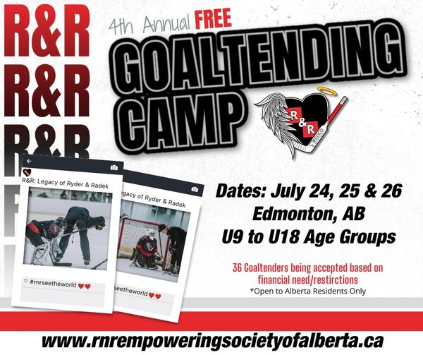 We’re excited to officially announce that the 4th Annual R&R Goalie Camp will take place July 24–26, 2026 in Edmonton, AB at the Terwillegar Recreation Centre.